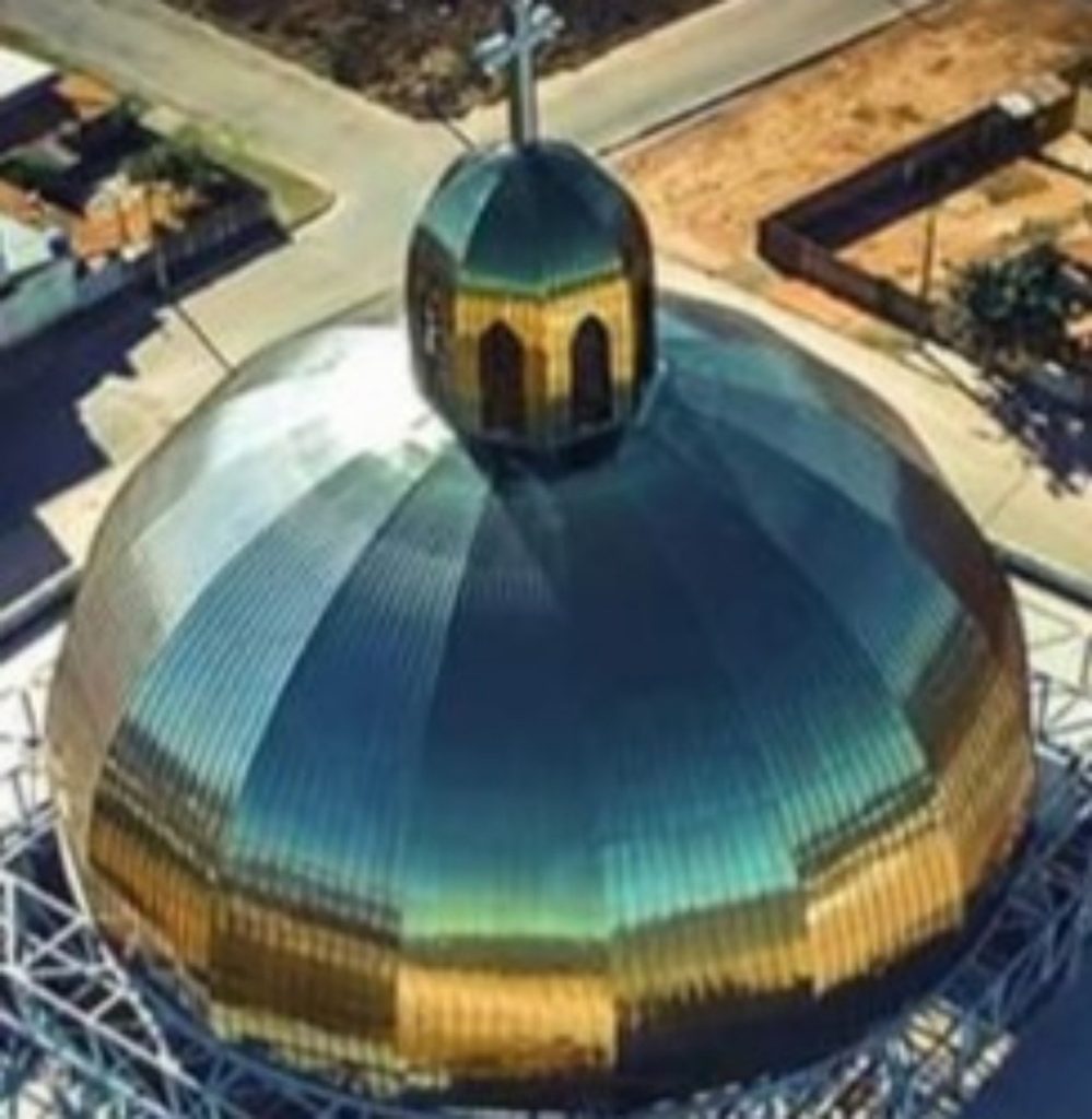 Um dos projetos religiosos mais impressionantes do país, a cúpula em aço inox dourado se destaca pela imponência, pelo brilho contínuo, pela mutação natural de cor, chamada pelos arquitetos de efeito furta-cor, e pela engenharia precisa. A escolha pelo inox garantiu longevidade, resistência ao tempo e uma estética contemporânea que valoriza a arquitetura sacra.