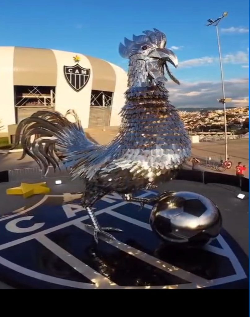 A escultura do Galo Inox Aperam de 8 metros de altura, assinada pelo Arquiteto Mineiro Joel Lima, instalada na Arena MRV, no estádio do Clube Atlético Mineiro, que representa “o mascote do clube”, sendo hoje uma das obras mais emblemáticas da arquitetura esportiva brasileira. O revestimento em inox preto exclusivo da bola e do escudo são elementos de destaque da escultura. A escultura do Galo Inox Aperam tornou-se um ponto turístico de visitação, um verdadeiro marco que une arte, engenharia e identidade cultural. Com formas imponentes e superfícies que refletem luz e movimento, a escultura se tornou símbolo de força, modernidade e inovação, posicionando-se como referência internacional na transformação do inox em verdadeira obra de arte.