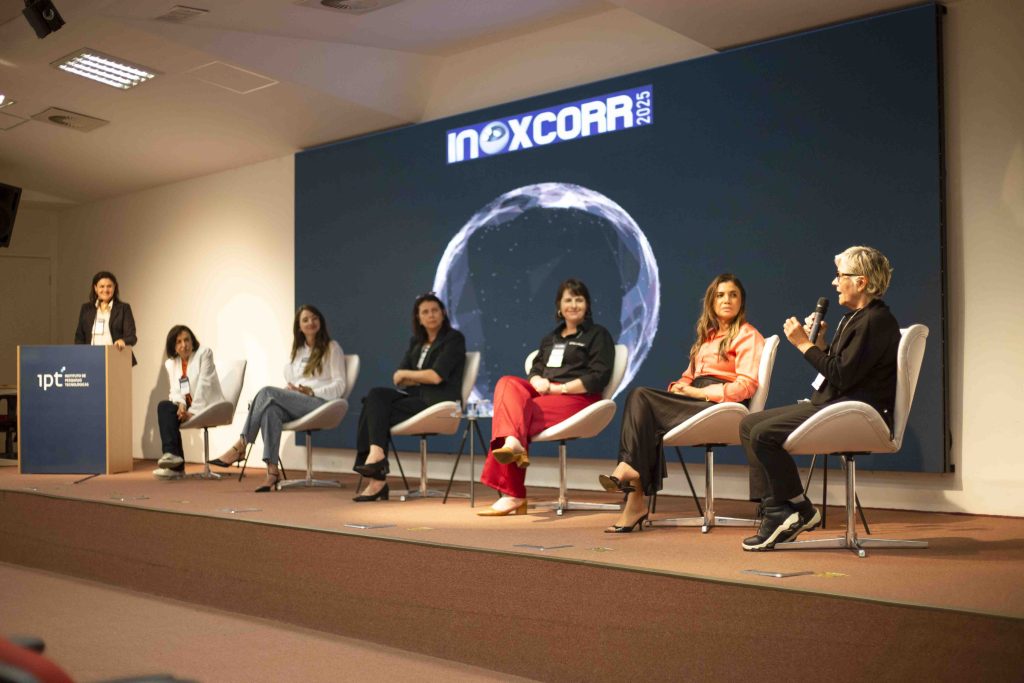 Para finalizar, no fim da tarde, a Inoxcorr 2025, mediada pela profa. dra. Karina Barcelos (CEFET-MG/ABINOX), deu espaço à mesa-redonda Mulheres Inoxidáveis, um tema muito coeso com o evento, diante da quantidade de mulheres participantes. No palco estiveram a enga. dra. Annelise Zeemann (TECMETAL), a enga. Isabel Noemi Gonçalves (Aperam South America), a dra. Zehbour Panossian (IPT/SP), a enga. Pamella Nunes (Aperam South America) e Fabiane Alves (ELLFAS). O foco que norteou o debate foi o papel e os desafios das mulheres no setor do inox e como ter voz em um mercado tão masculino.
